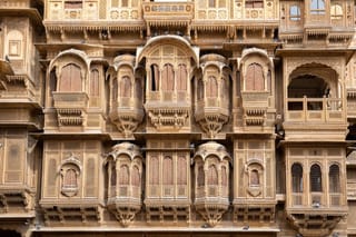 Next, we will take a tour of the magnificent Patwon ki Haveli, a grand mansion with exquisite wall paintings, intricate mirror work on the walls, beautiful balconies and arches that open up to the panoramic views of the fort and the desert.