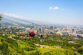 Get ready as you head to the airport to catch your flight to Almaty - a lively city in Kazakhstan.