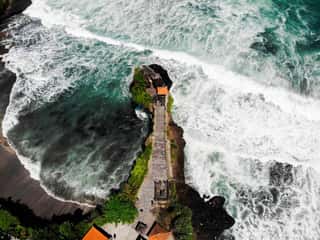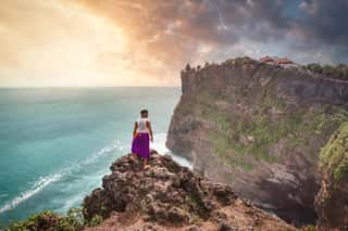 Located on a mighty cliff, the Uluwatu Temple overlooks the beautiful ocean from where you can watch a beautiful sunset.