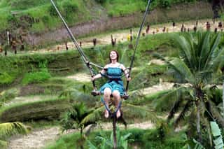 Start your day by riding on the Bali Swing over the lush green landscapes and rice terraces of Ubud.