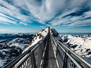 Feel the thrill as you walk on the "Cliff Walk," Europe's highest suspension bridge, perched along the cliffs of Mt. Titlis.