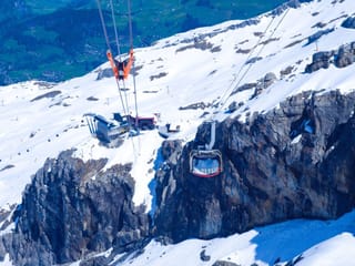 Feel the thrill as you walk on the "Cliff Walk," Europe's highest suspension bridge, perched along the cliffs of Mt. Titlis.