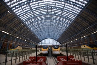 Proceed to the train station to board Eurostar, a high-speed train connecting London with Paris through the Channel Tunnel.