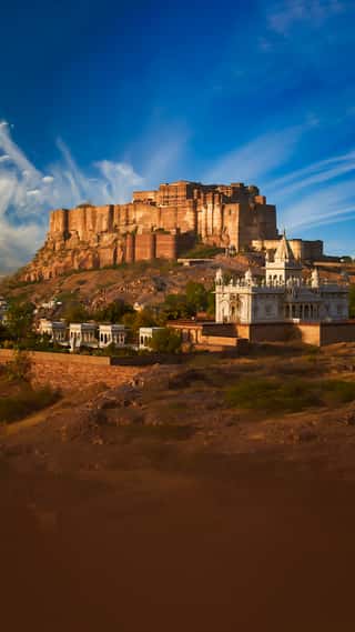 Afterwards, proceed to the mighty Mehrangarh Fort, perched on a hilltop overlooking the entire Blue City.