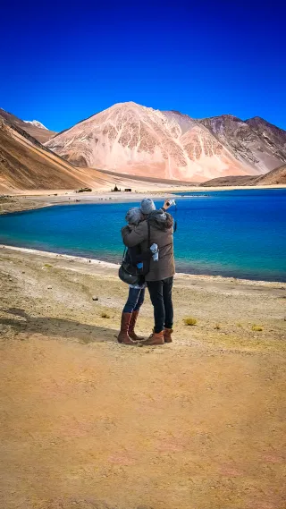 As you approach Pangong Tso, the blue water slowly reveals itself — it’s a perfect spot to sit and just be together.