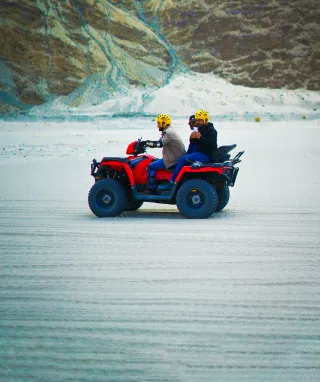 Further, we drive past the Shyok River and reach Hunder Sand Dunes, a cold desert famous for double-humped camel rides and ATV adventures (optional).