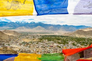 Arrive at the Leh airport after a scenic flight over the Himalayas.