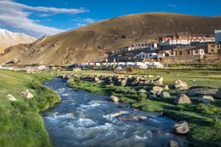 Cross the Loma Bridge on the Indus River and ride through the rugged landscapes until you reach the charming village of Hanle by evening.