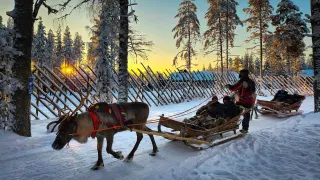 We will enjoy a fun Reindeer and Husky Sleigh ride through the snow-filled landscapes.