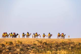 Experience the Thar desert on a camel ride overlooking the vast sandy landscape.