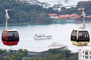 Upon reaching Sentosa Island, start off by taking a scenic cable car ride, where you can marvel at the surrounding sea views.