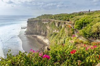 Located on a mighty cliff, the Uluwatu Temple overlooks the beautiful ocean from where you can watch a beautiful sunset.