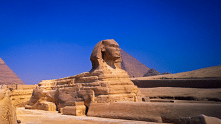 Witness the Great Sphinx, the legendary guardian of the pyramids with the body of a lion and a human head, carved from a single stone.
